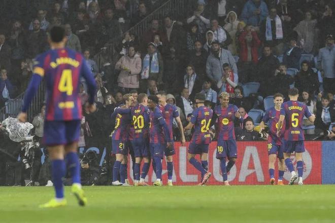 紧追皇马!巴萨客场4比2塞尔塔 37岁莱万戴帽亚马尔建功